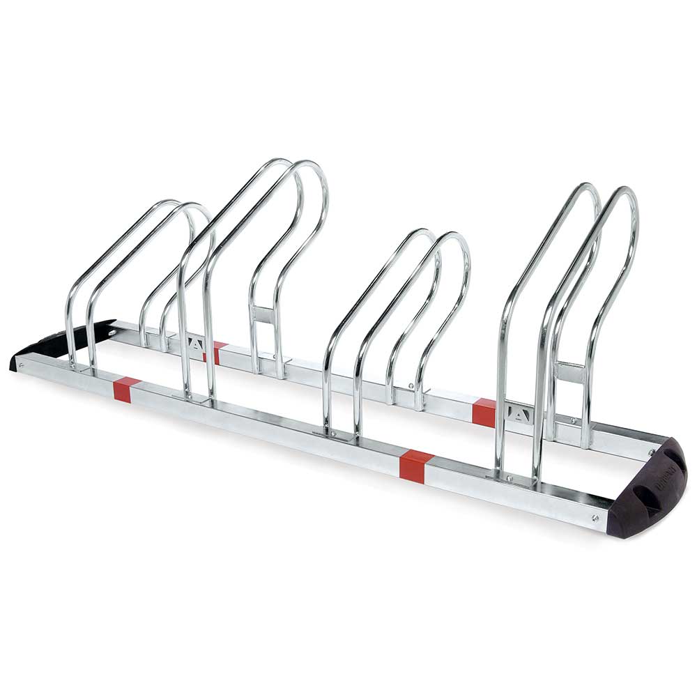 Fahrradträger mit 4 höhenversetzten Stellplätzen für beliebig viele Fahrräder, egal ob Mountainbike oder Citybike, mit der Möglichkeit, diese nur auf einer Seite zu positionieren. Die Korrosionsschutzbehandlung durch Feuerverzinkung macht es widerstandsfähig gegen Witterungseinflüsse sowie Stöße und Schläge.