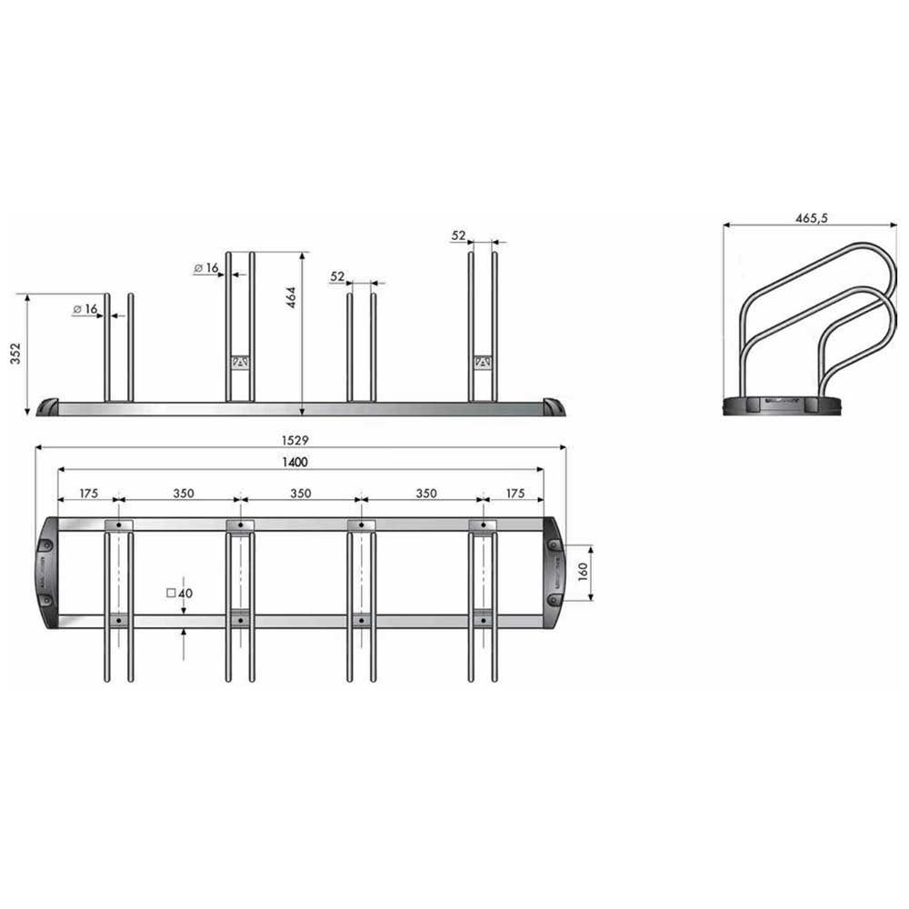 UR3 Urbany Stahl Fahrradträger 4 Stellplätze einseitig