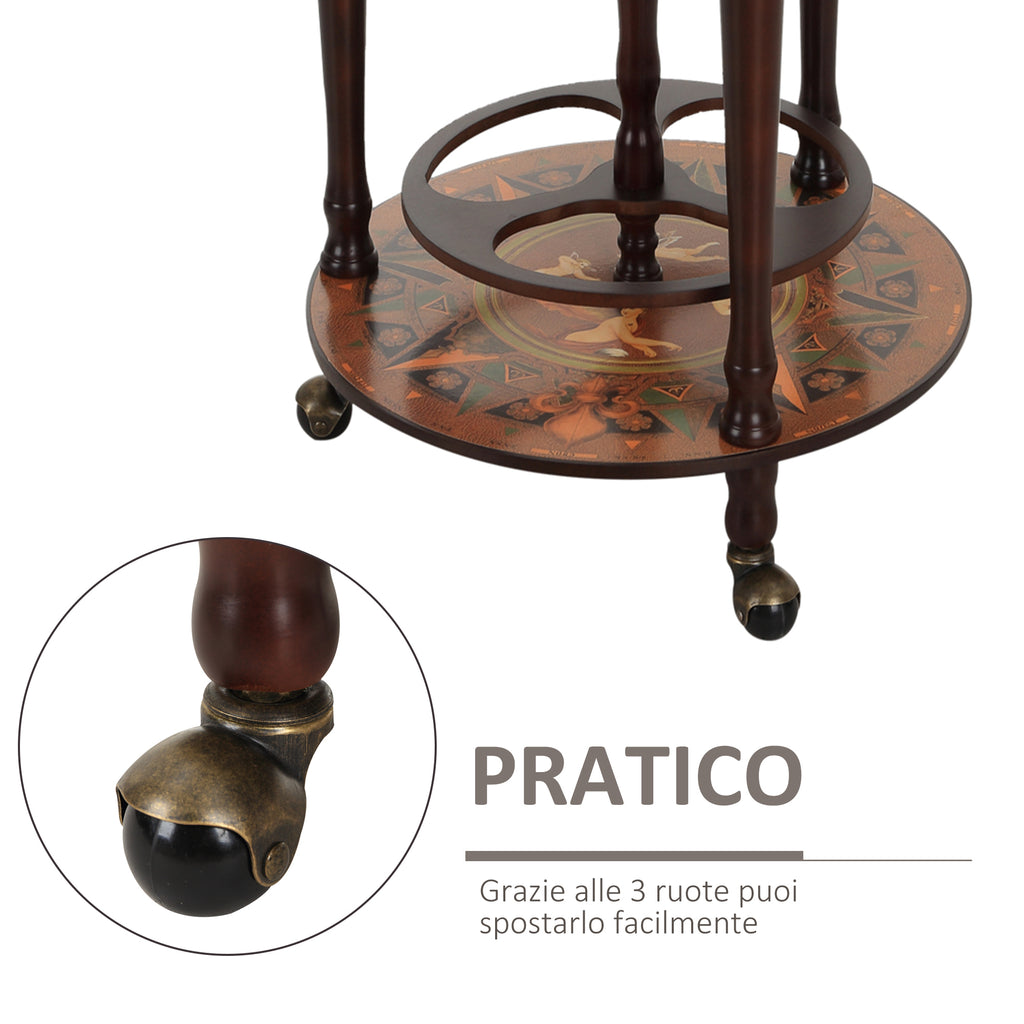 Ø47x90 cm Kugelförmiger Flaschenhalter aus Holz mit Rädern