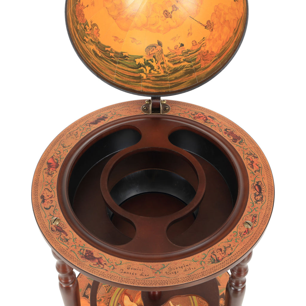 - KLASSISCHER LOOK: Dekorieren Sie Ihre Räume mit dieser Barkugel im Vintage-Stil. Der Globus ist mit Sepia-Prints verziert und öffnet sich wie ein Deckel. Im Inneren befindet sich ein Regal, in dem Gläser, Weinflaschen oder Spirituosen abgestellt werden können