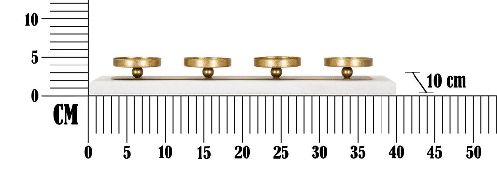 4-Sitzer-Tischkerzenhalter 40 x 10 x 5 cm mit goldener Metallbasis aus weißem Marmor