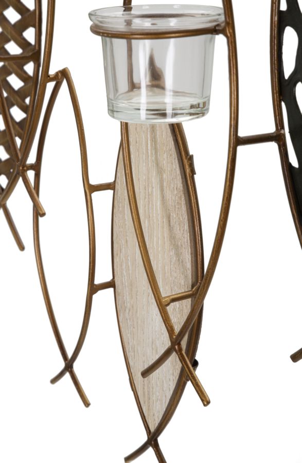 Wandkerzenhalter Fisch aus Metall 4 Sitzplätze 66x9x40,5 cm