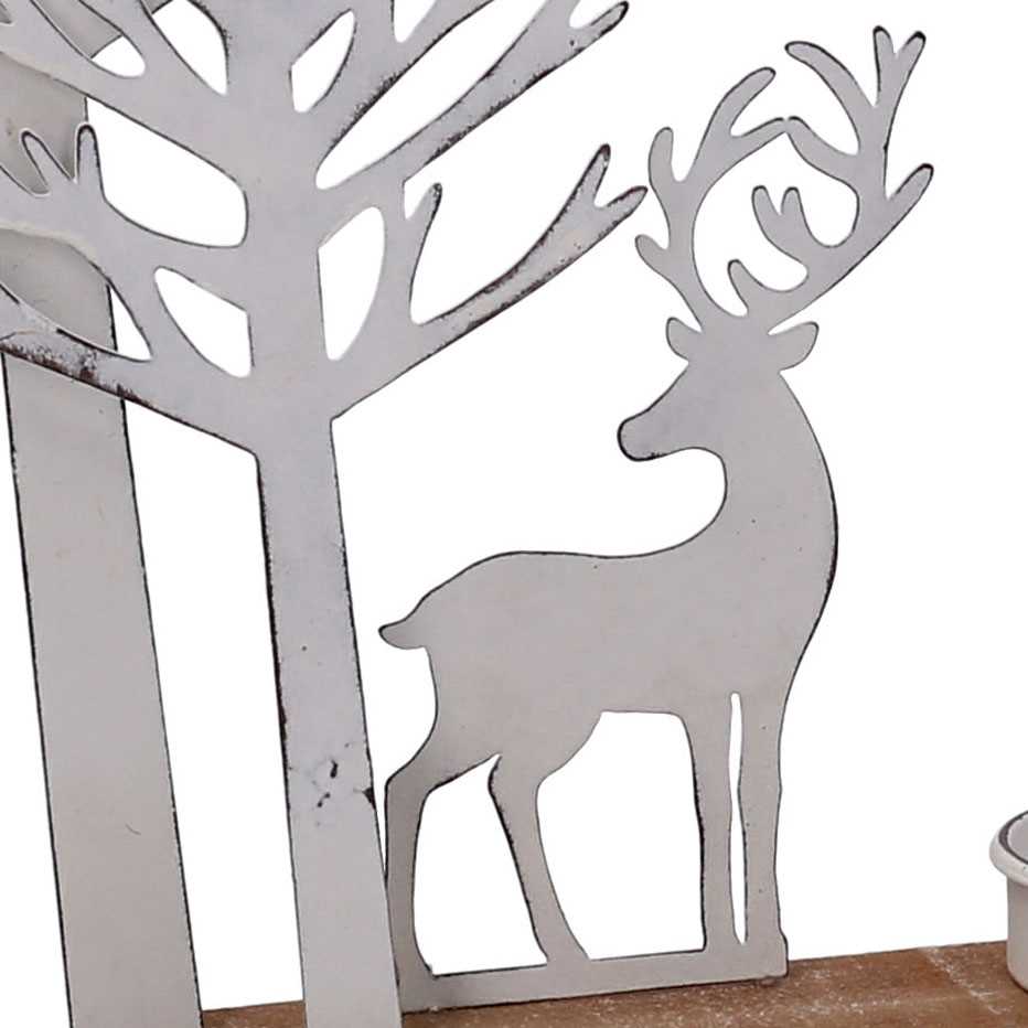 Portacandele metallo renna e albero bianco cm 24,5x4,2xh30