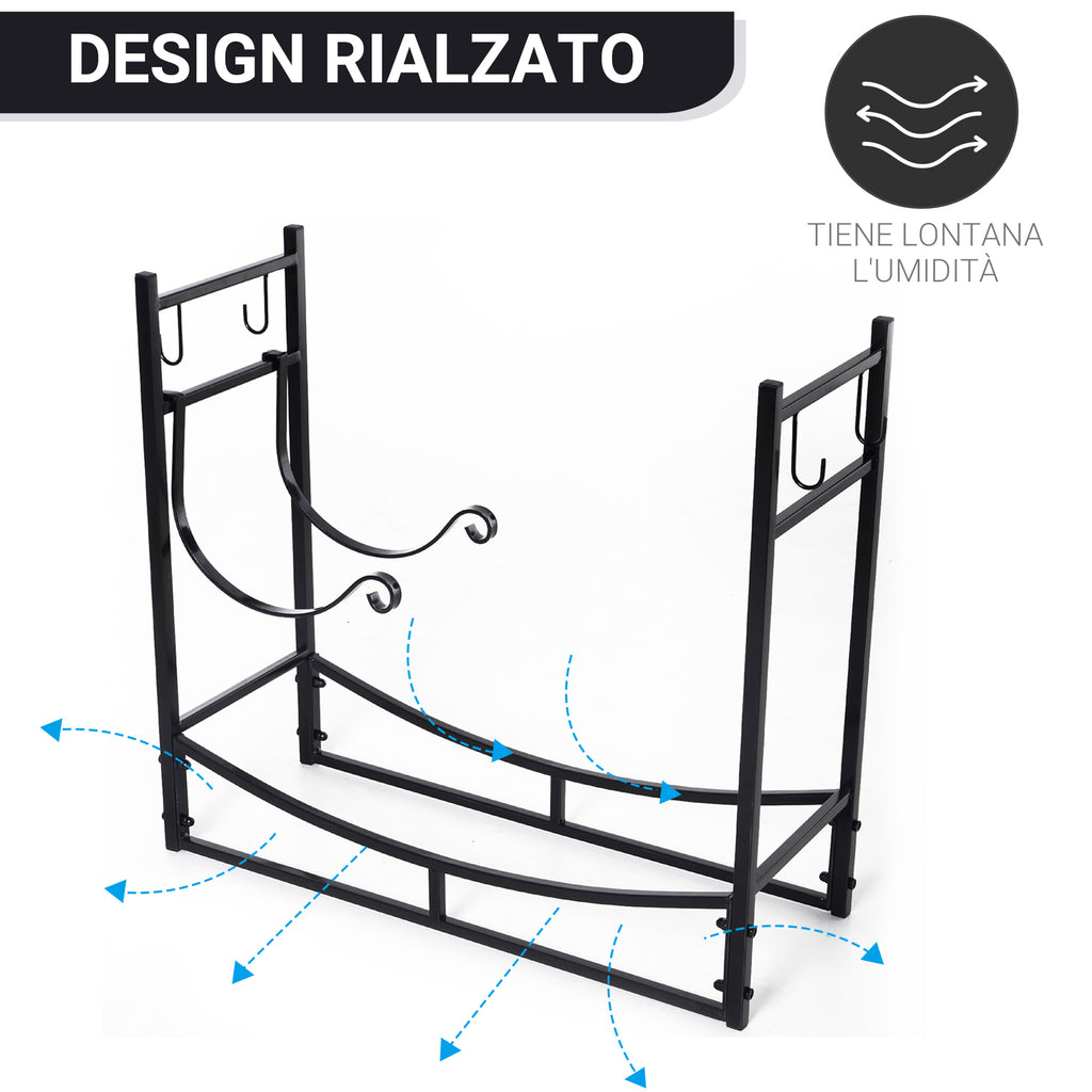 - MULTIFUNKTION: Dieser elegante Holzscheithalter aus Eisen ist mit 2 abnehmbaren Stützen zum Halten von Ästen und Holz und 4 Haken zum Aufhängen von Kaminzubehör ausgestattet. Dieser Ständer ist auch ideal zum Trocknen von Holz, dank seines erhöhten Designs, das Feuchtigkeit vom Boden fernhält