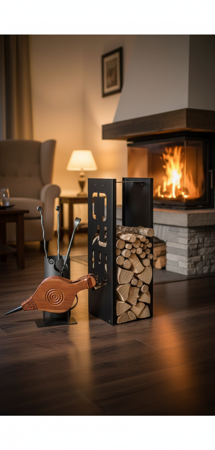 Questo portalegna alto, componibile con viti ad impatto, unisce praticità e design impattante. La sua struttura modulare offre flessibilità, mentre l'inclusione di viti ad impatto semplifica il montaggio. Il design distintivo, arricchito da una scritta, aggiunge un tocco di personalità e stile al tuo spazio camino.