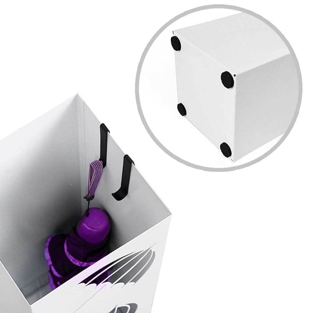 1 x Portaombrelli in Metallo Design Quadrato Stand Bianco Vaschetta Salvagoccia