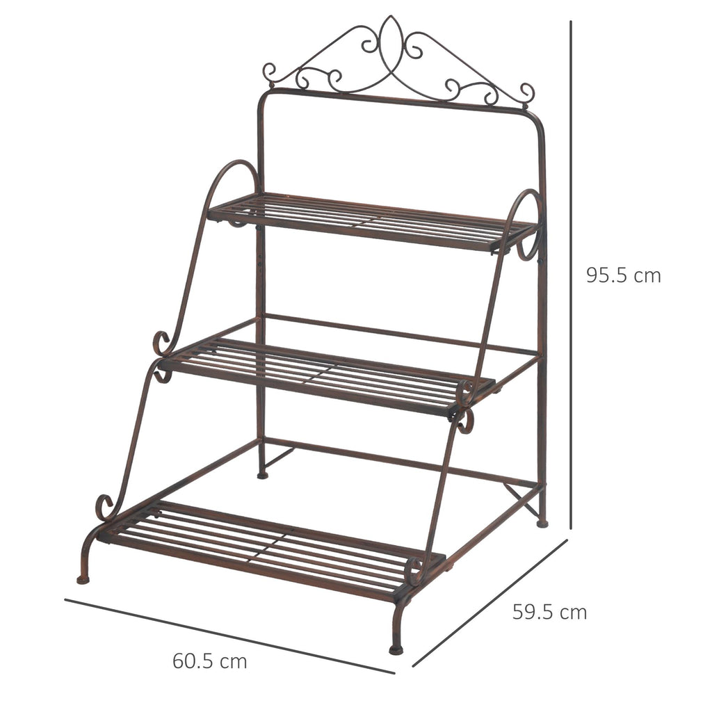 Pflanzenhalter 3 Regale 60,5 x 59,5 x 95,5 cm aus braunem Metall