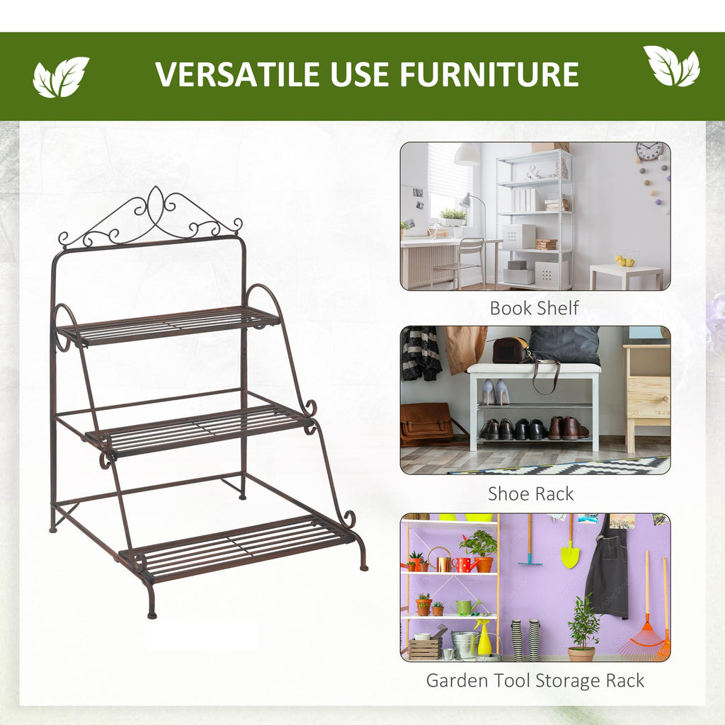 Verleihen Sie Ihrem Zuhause mit diesem charmanten Pflanzgefäß Stil und Platz. Unser 3-stöckiger Blumenkasten ist mit einem schönen und stabilen Metallrahmen konstruiert, der Ihrer Veranda, Terrasse, Ihrem Innenbereich oder wo immer Sie ihn verwenden möchten, einen Hauch von Eleganz verleiht. Es ist perfekt für alles, von Pflanzen über Bücher bis hin zu dekorativen Kerzen. Mit diesem praktischen Outdoor-Pflanzgefäß können Sie Ihre Umgebung ganz einfach sauber, ordentlich und stilvoll halten!