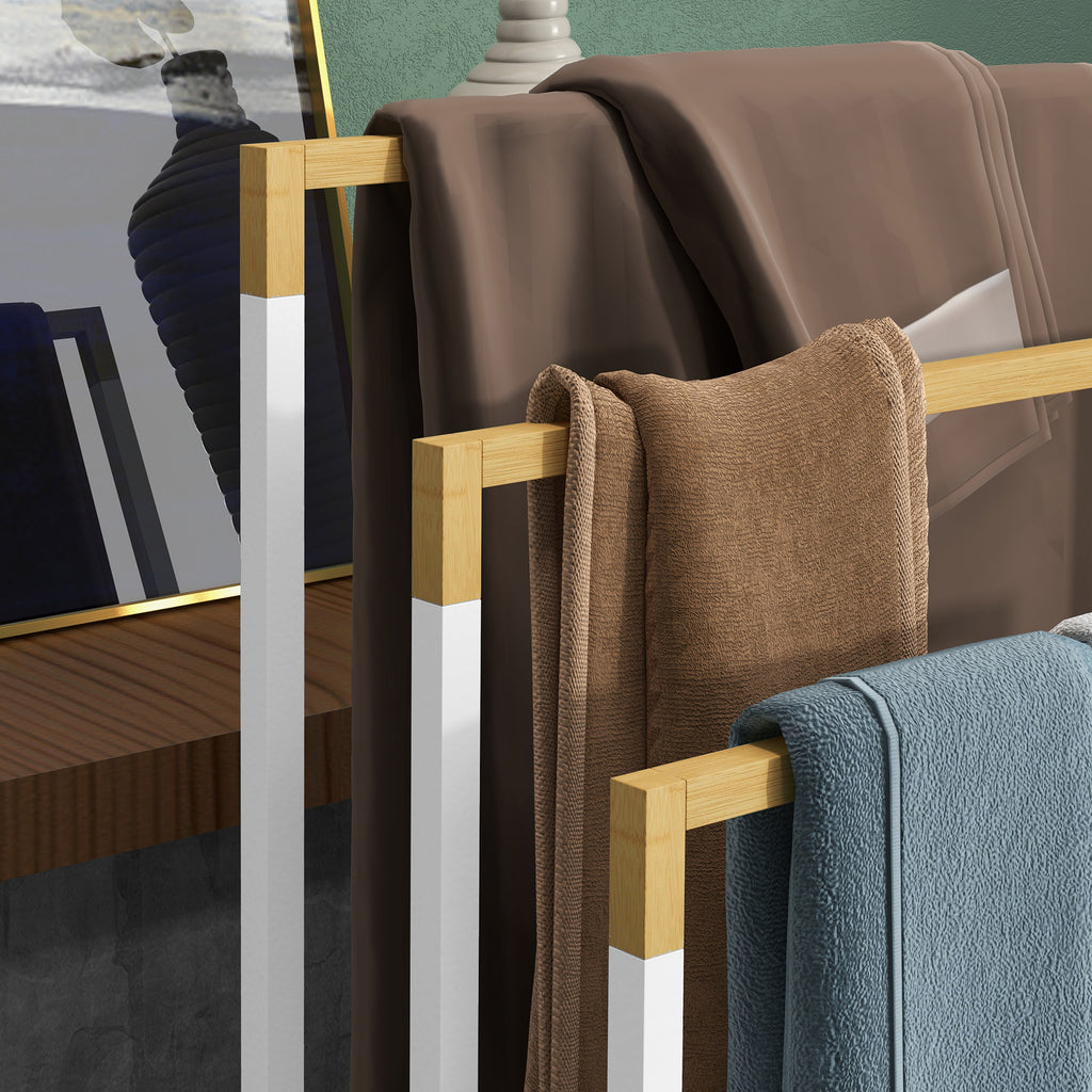 Portasciugamani Autoportante a 3 Sbarre 45x22,5x86 cm in Bambù e Acciaio Bianco e Legno