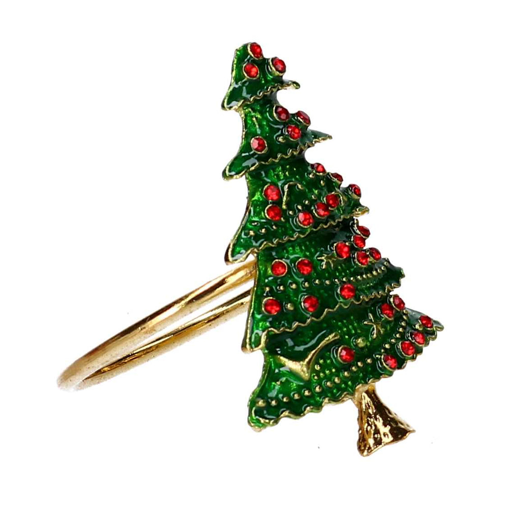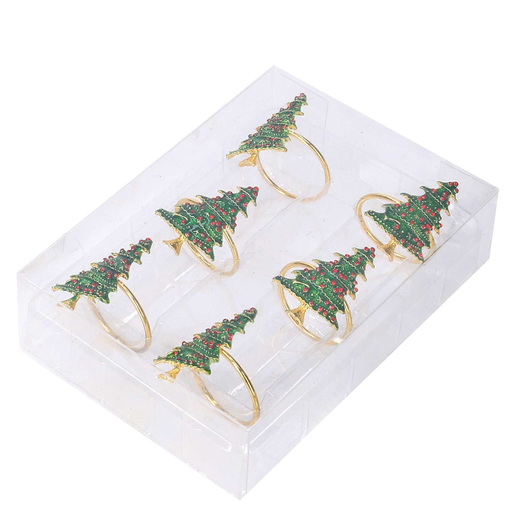 Portatovaglioli metallo confezione 6pz pini verde oro cm 16x11,5xh4,5