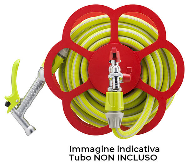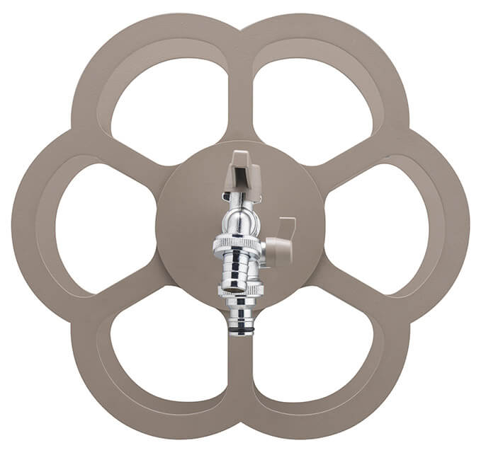 Praktischer Wandschlauchhalter, mit dem Sie einen einfachen Wasserhahn in ein funktionales und dekoratives Element verwandeln können, in dem Sie Ihren Bewässerungsschlauch ordentlich aufbewahren und ihn immer mit dem Zweithahn verbunden halten können.
