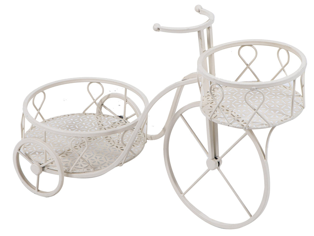 Fahrradförmiger Blumentopf 37 x 59 x 25 cm aus cremefarbenem Schmiedeeisen