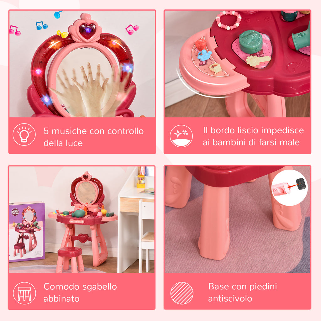 Schminkstation Spielzeugspiegel für Kinder mit Spiegel und Zubehör in Pink