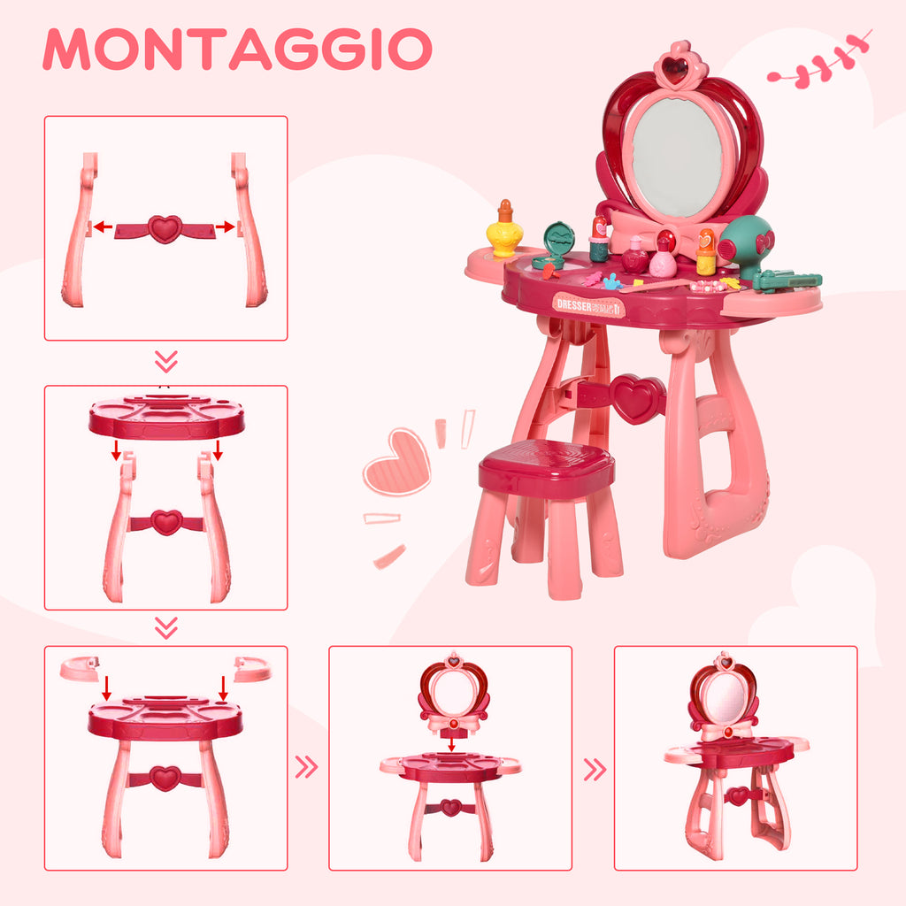 - Bestehend aus einem Schminktisch mit passendem Hocker und 36 Accessoires