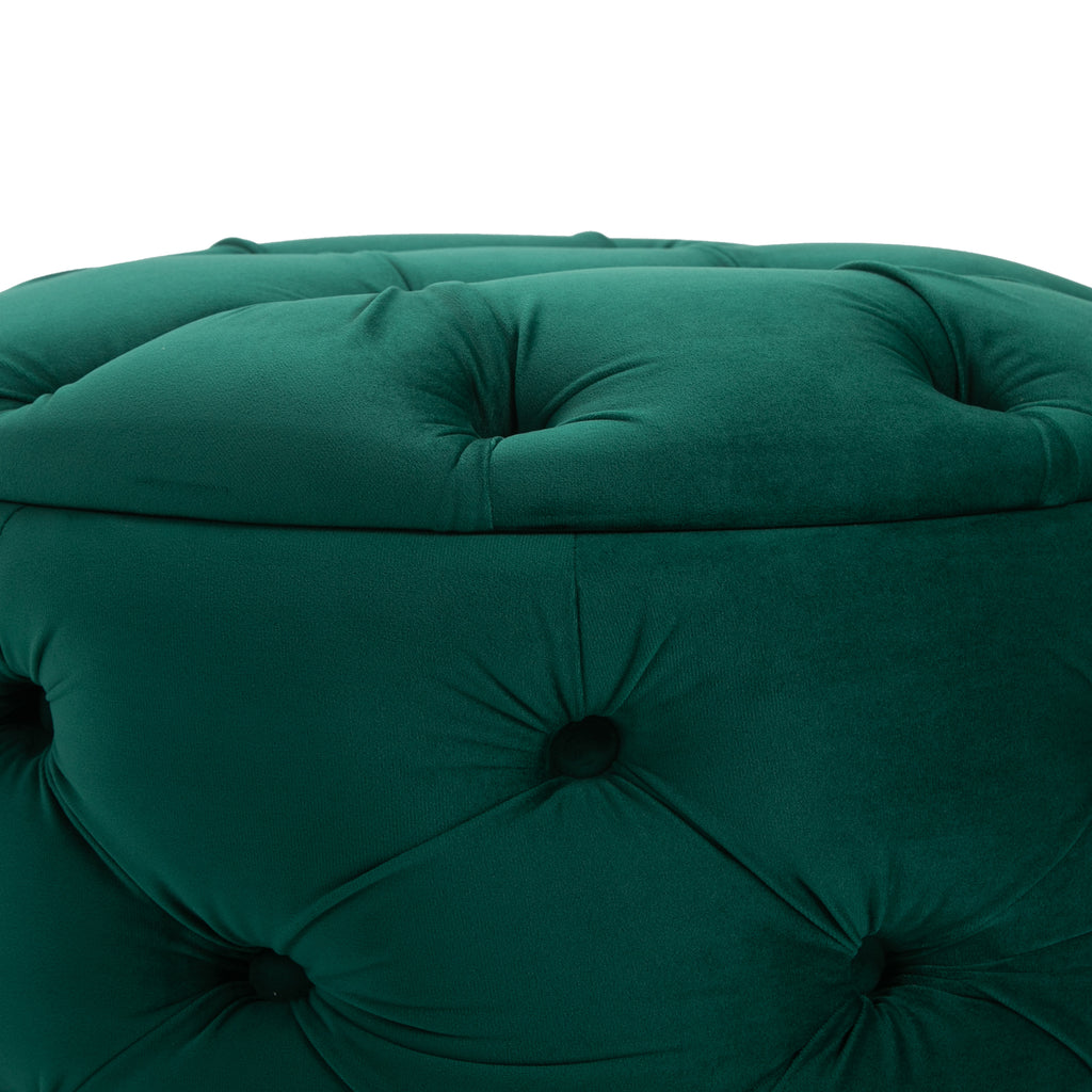 Pouf mit Aufbewahrung und Bezug aus Samt mit grünen gesteppten Knöpfen