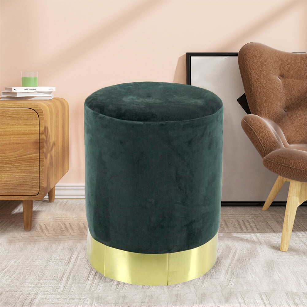 Dai un tocco moderno e raffinato agli interni di casa tua con questo nuovo e bellissimo pouf in velluto e base decorativa in metallo.