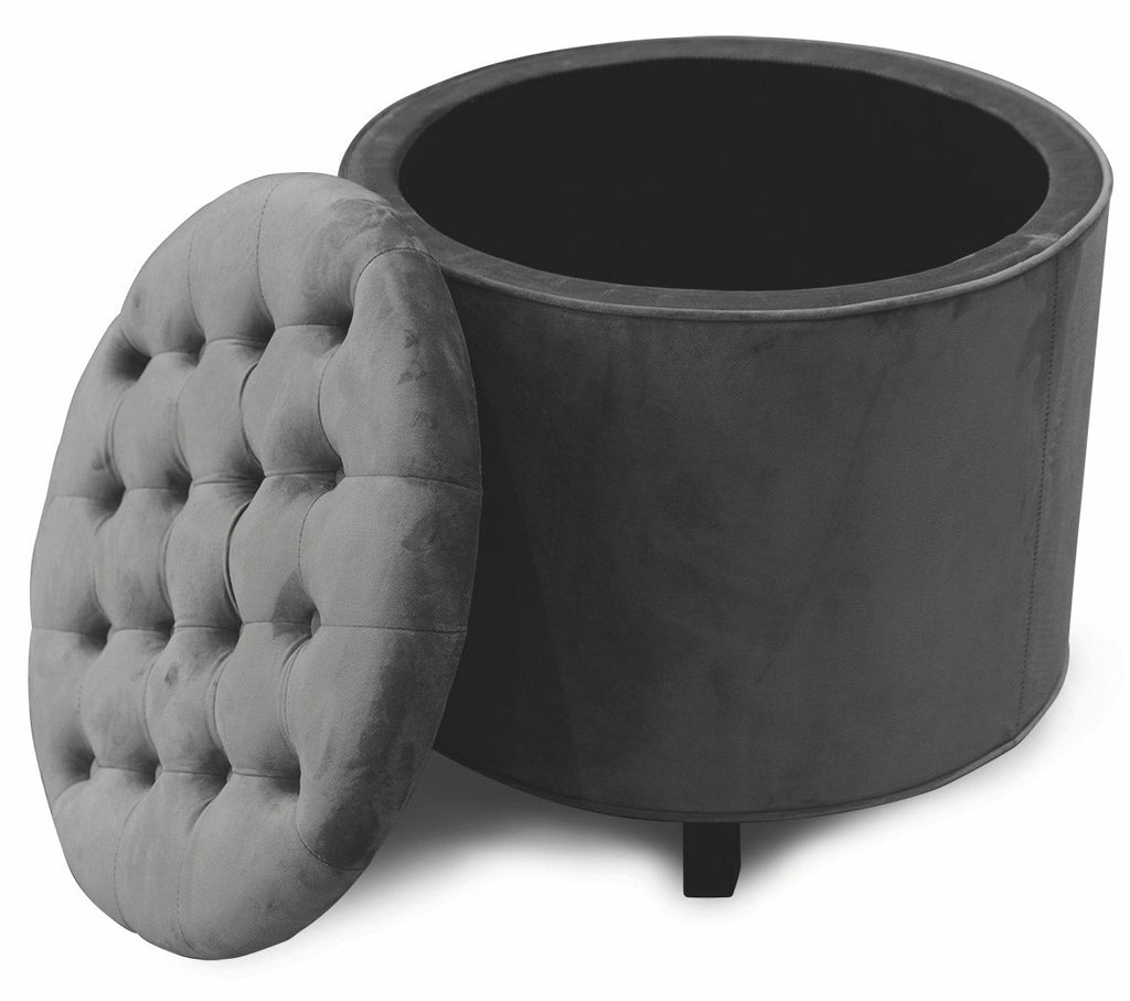 Hocker Fußstütze Container Ø55x55 cm in dunkelgrauem Soriani-Samt