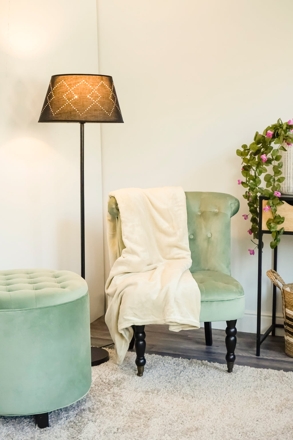 Technische Merkmale Hocker Fußstütze Container Ø55x55 cm in Tiffany Green Soriani Velvet