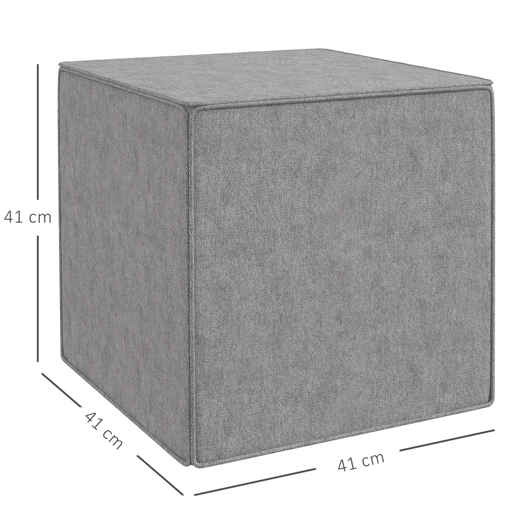 Pouf Poggiapiedi Quadrato Rivestimento Rimovibile in Tessuto Effetto Lino 41x41x41 cm Grigio Chiaro