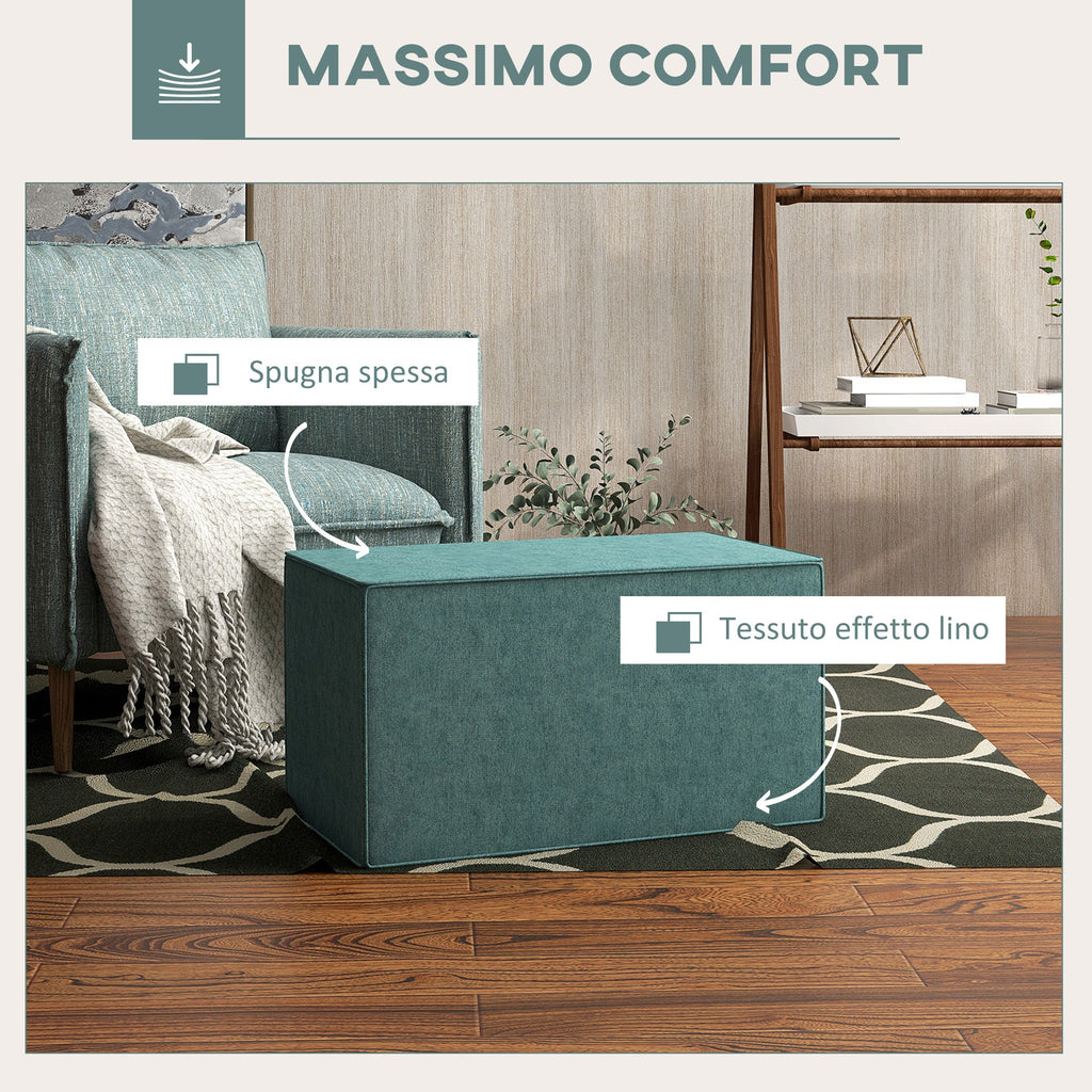 Pouf Poggiapiedi Rettangolare 75x41x41 cm Rivestimento Rimovibile in Tessuto Effetto Lino Verde