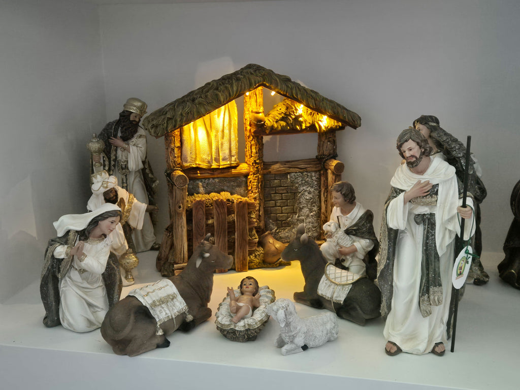 - 12 pezzi: Giuseppe, Maria, Gesù Bambino, 3 Re Magi, 1 pecora, 1 bue, 1 asinello, 1 arcangelo e 1 pastore