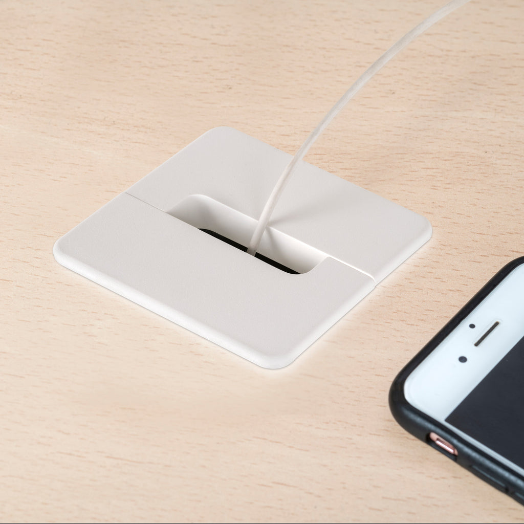 Plastwin Table Cable Organizer wurde entwickelt, um die Kabel von elektronischen Geräten auf Schreibtischen, Bürotischen oder Wohnmöbeln zu verstecken. Sein diskretes quadratisches Design ermöglicht eine vollständige Integration in die Möbel, obwohl seine Installation eine kreisförmige Bearbeitung mit Ø80 mm erfordert.