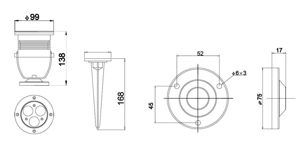 Wasserdichter Vollfarb-Aluminiumprojektor mit LED Spike 9 Watt Intec LED-IRIDE-9P RGB-Licht