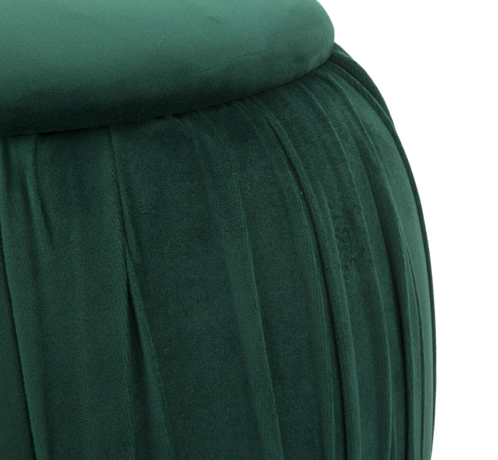 Puff Container Paris Green Ø41x41 cm Schwammholz und grüner und goldener synthetischer Samt