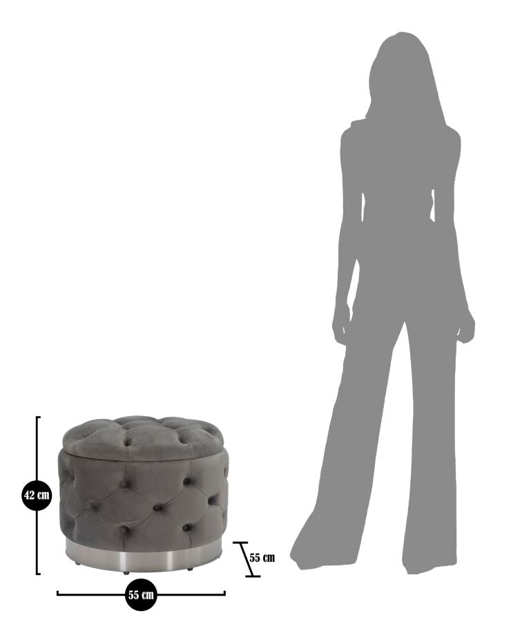 Puff Container Rich Grey Ø55x42 cm aus Schwammholz, Polyester und grauem Stahl
