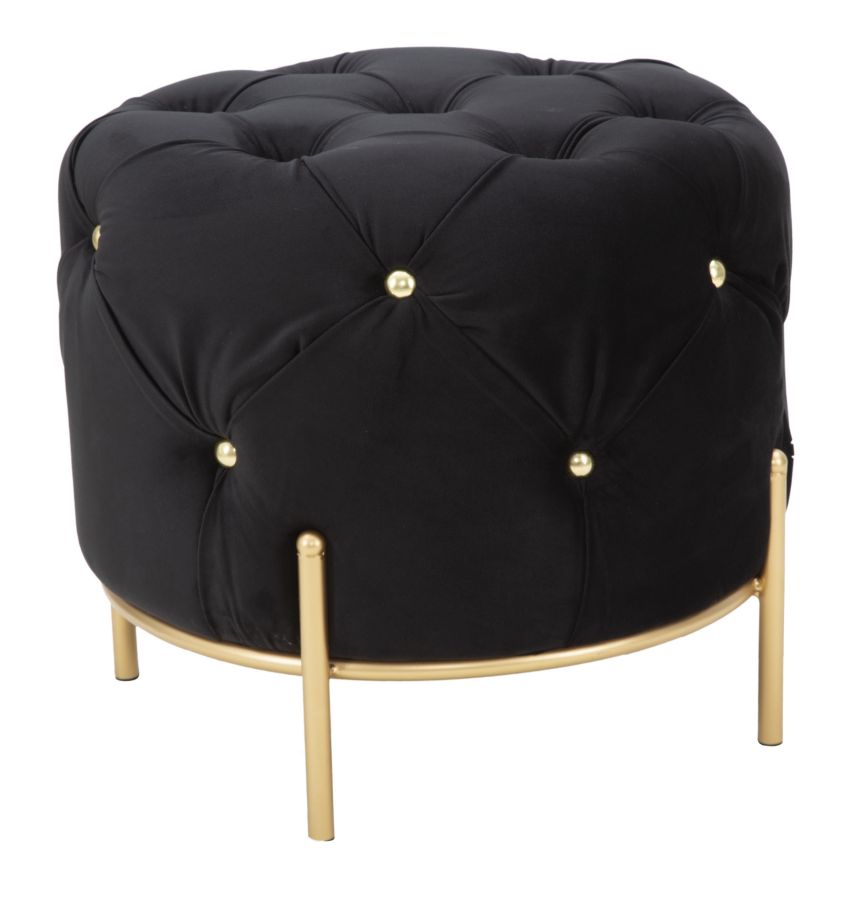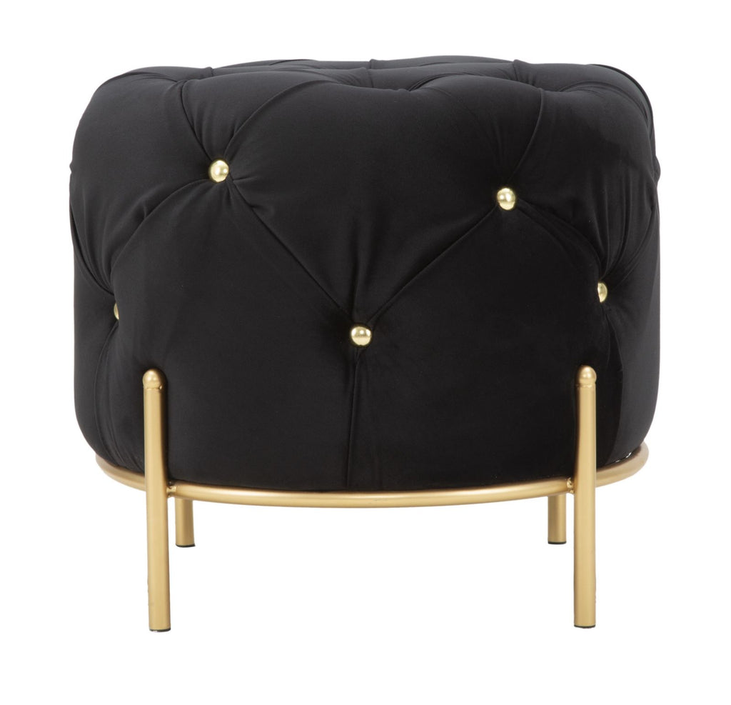Puff Diamond Glam Black Ø45x40 cm in Eisen und MDF und Schwamm und Polyester Schwarz und Gold