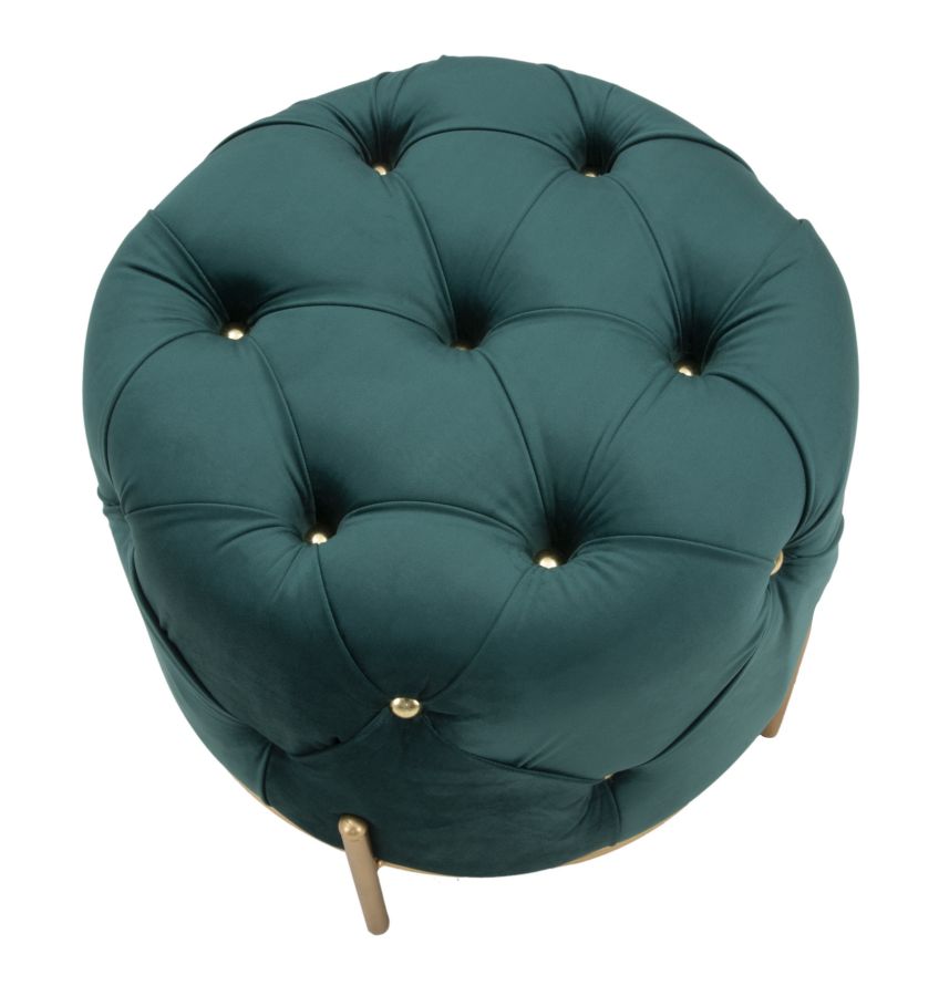 Puff Diamond Glam Green Ø45x40 cm in Eisen und MDF und Schwamm und Polyester Grün und Gold