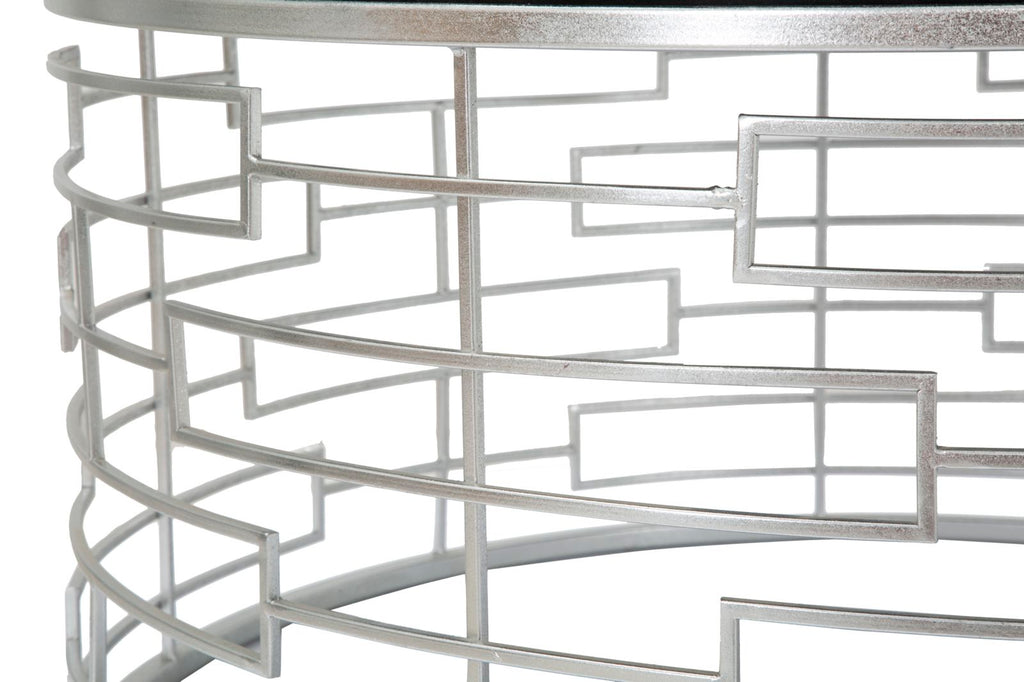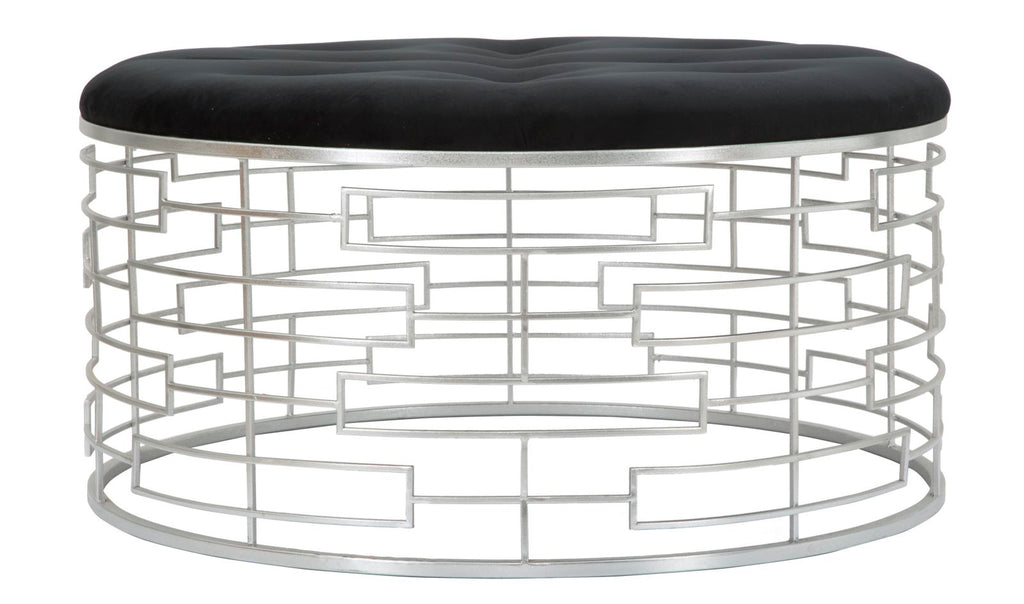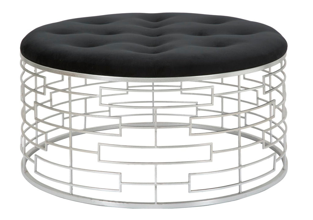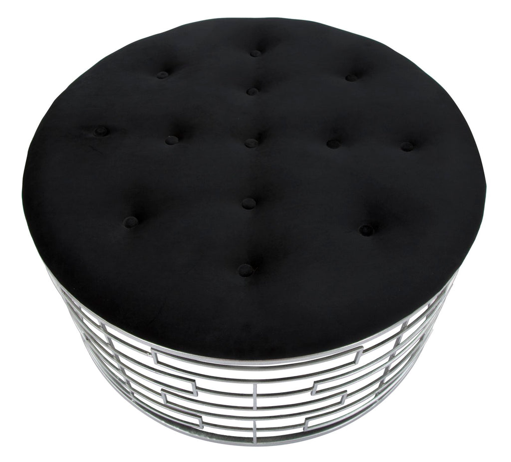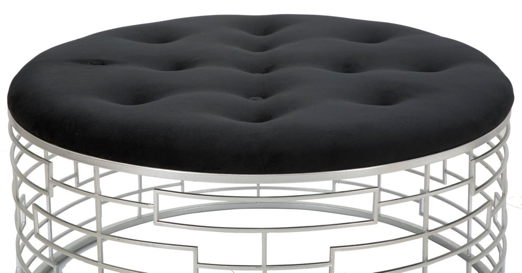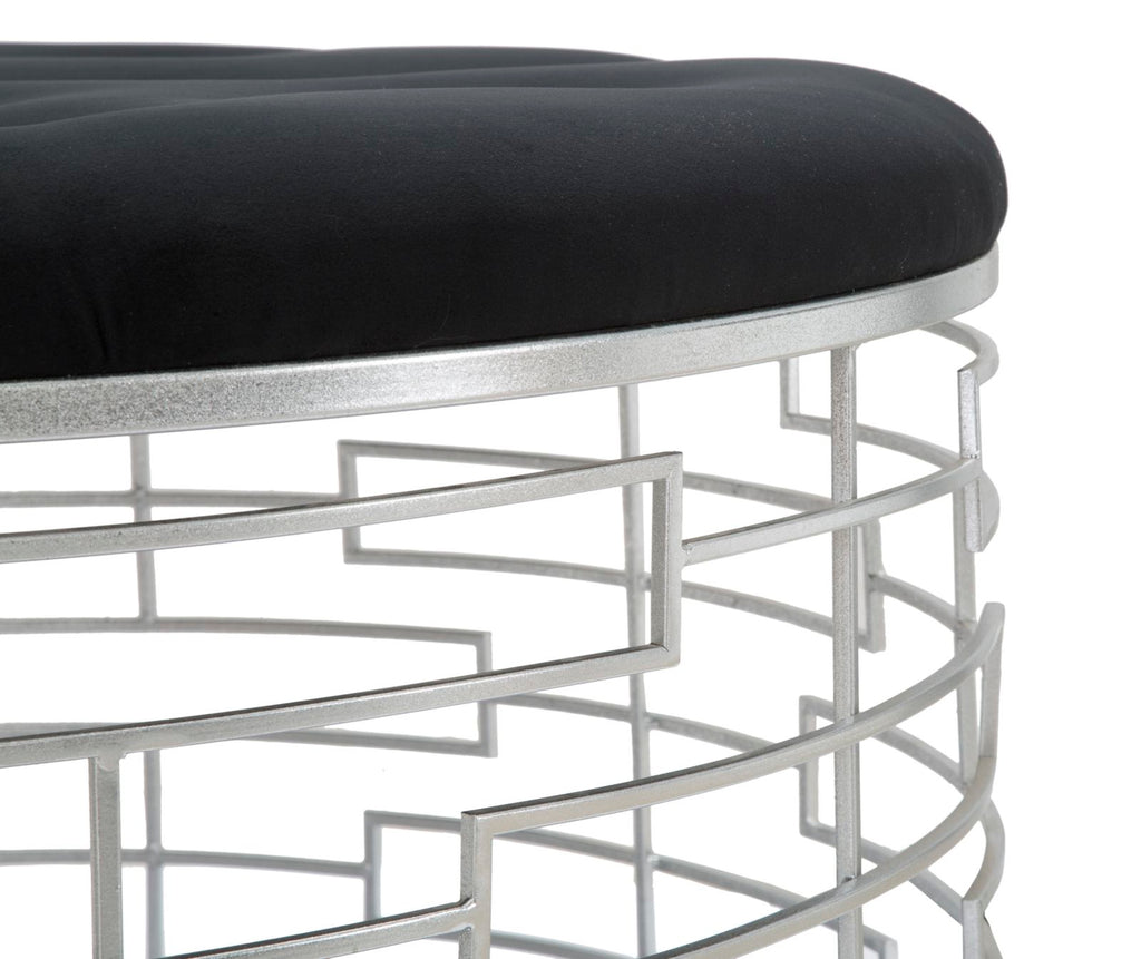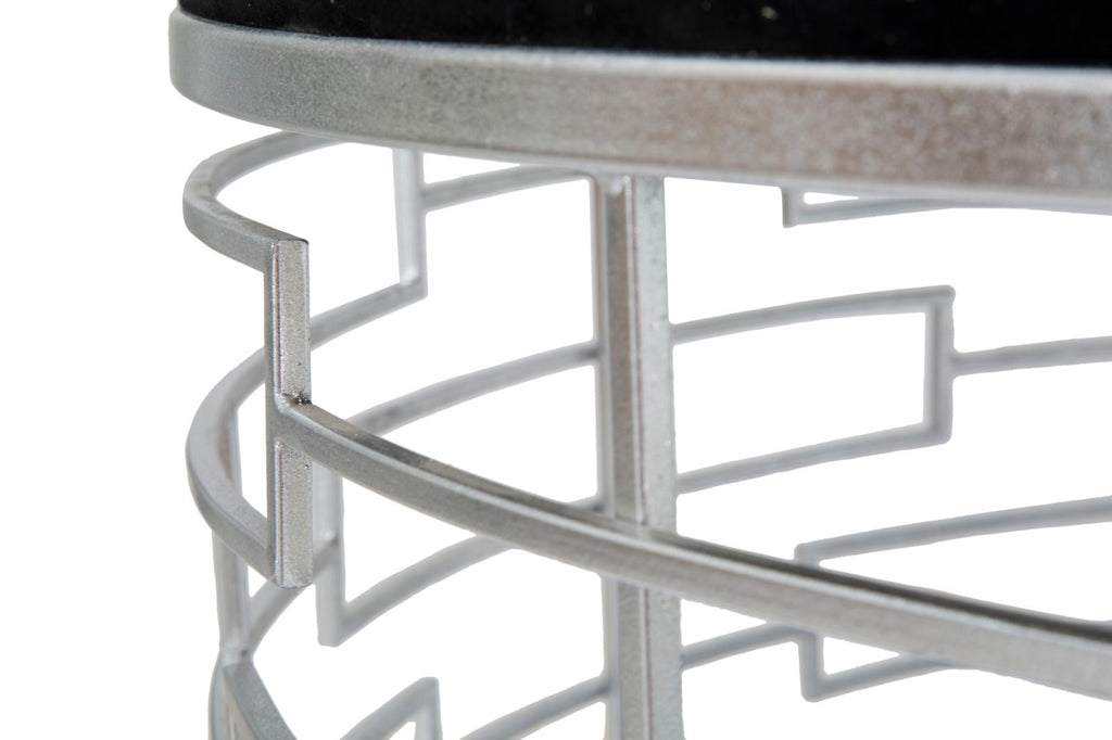 Runder Hocker aus Metall mit Samt. Schwarz und Silber perfekt aufeinander abgestimmt. Geschickt miteinander verbundene Rechtecke, die das Gefühl kleiner Iglus vermitteln.