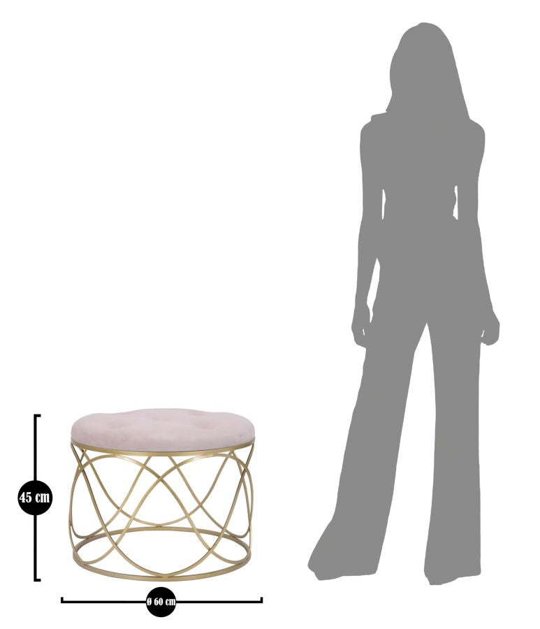 Puff Luty Ø60x45 cm in Iron and Sponge und Pink and Gold Velvet