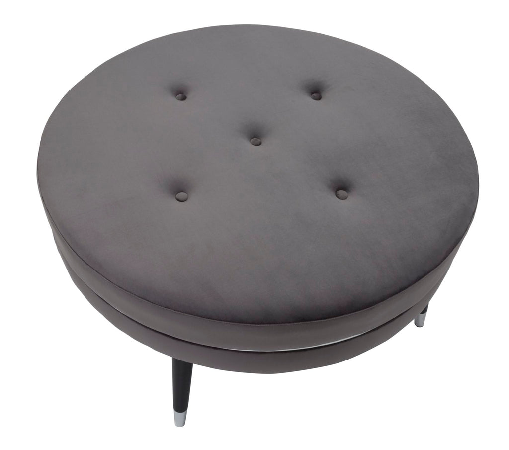 Puff Paris xxl Grau/Silber Ø90x46 cm in grauem und schwarzem Samt