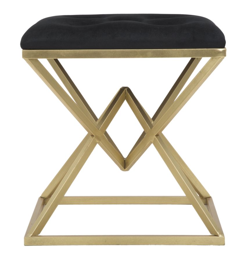 Puff Piramid 45x45x48 cm in Eisen und Schwamm und Gold und schwarzem Polyester