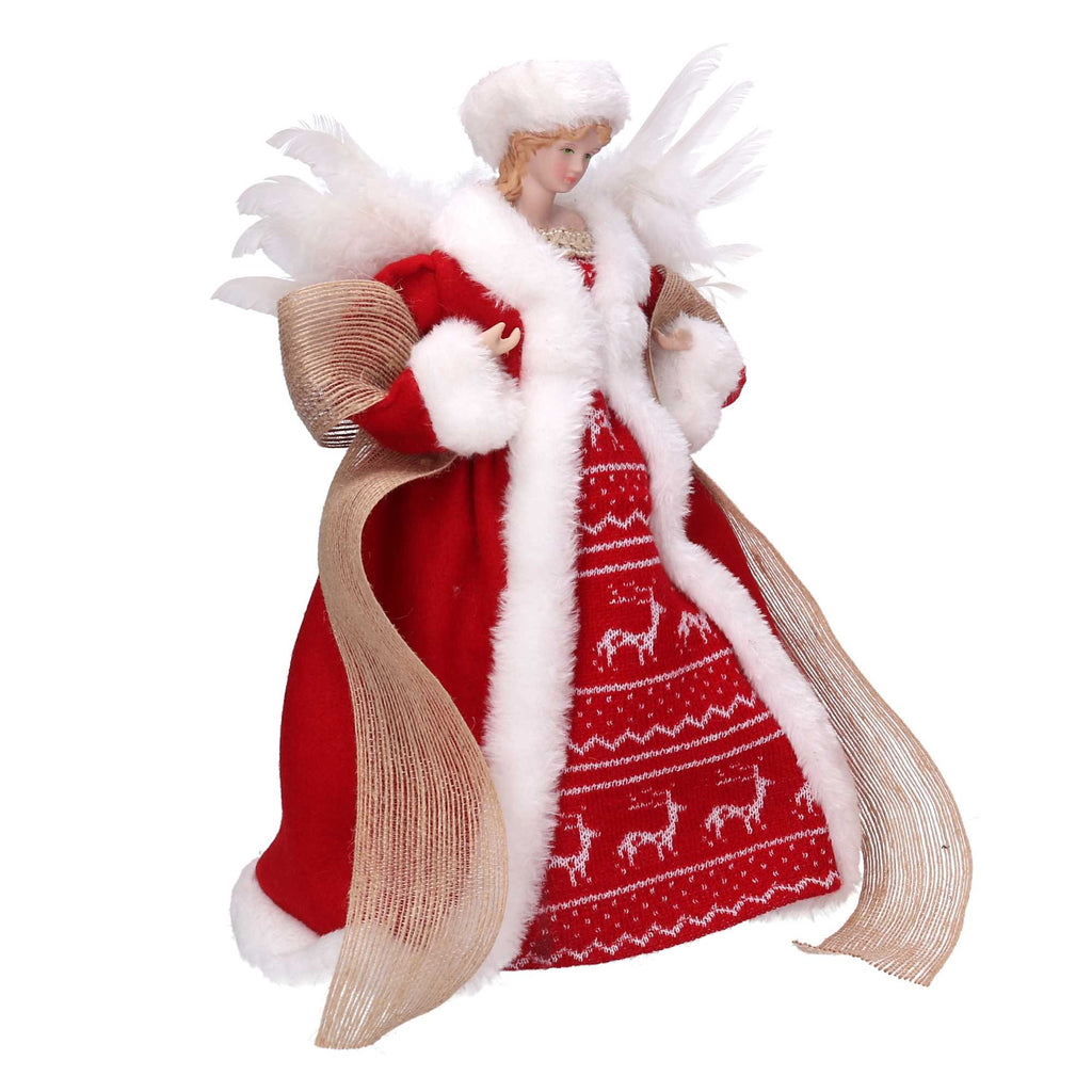 Puntale tessuto angelo bianco e rosso cm Ø22xh30