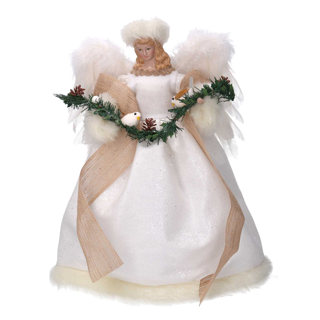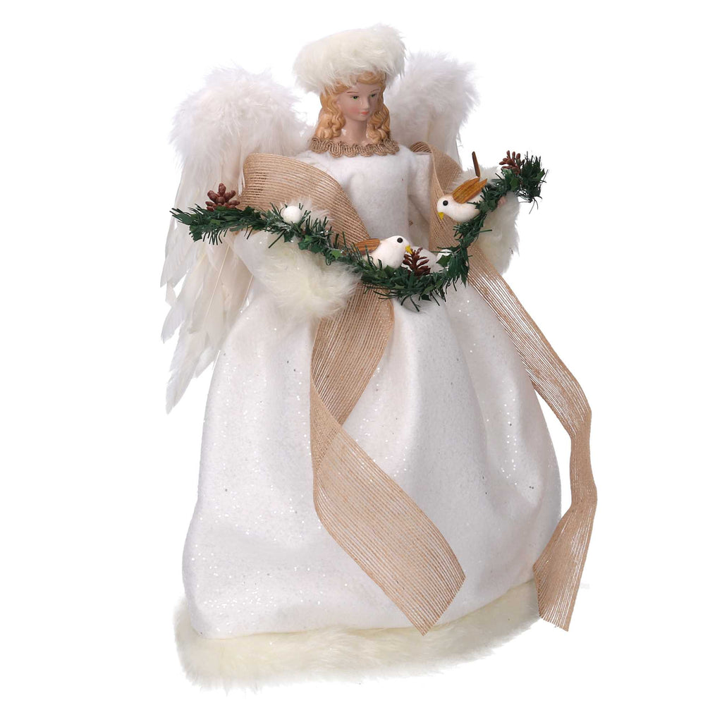 Puntale tessuto angelo con uccellino bianco cm Ø26xh40