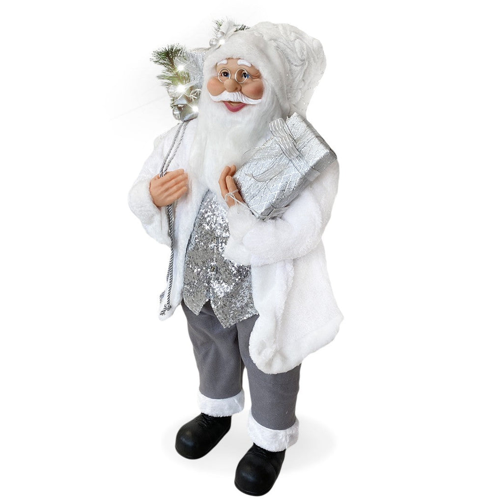 Weihnachtsmannpuppe H90 mit Lichtern und Geräuschen Weiß und Silber