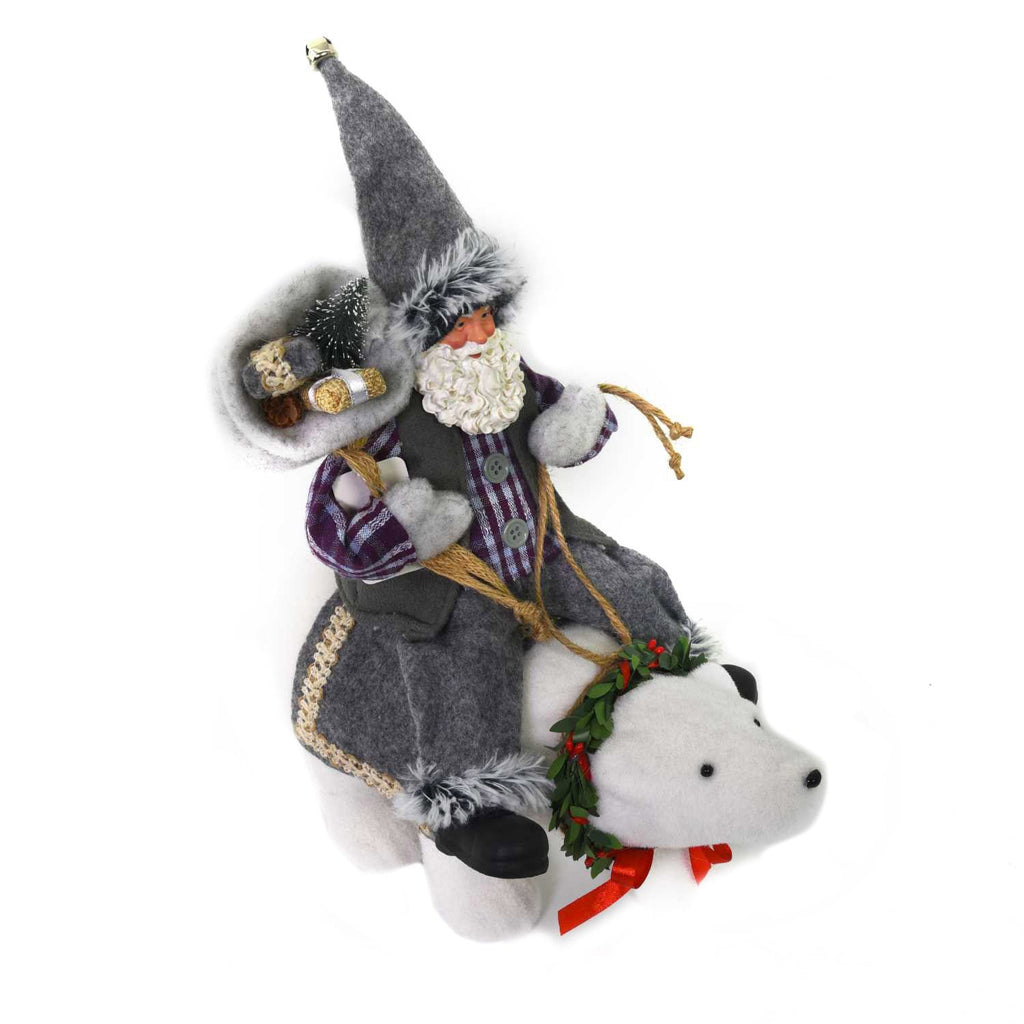 - Stoff Weihnachtsmann auf lila Bär 30x10xh36 cm