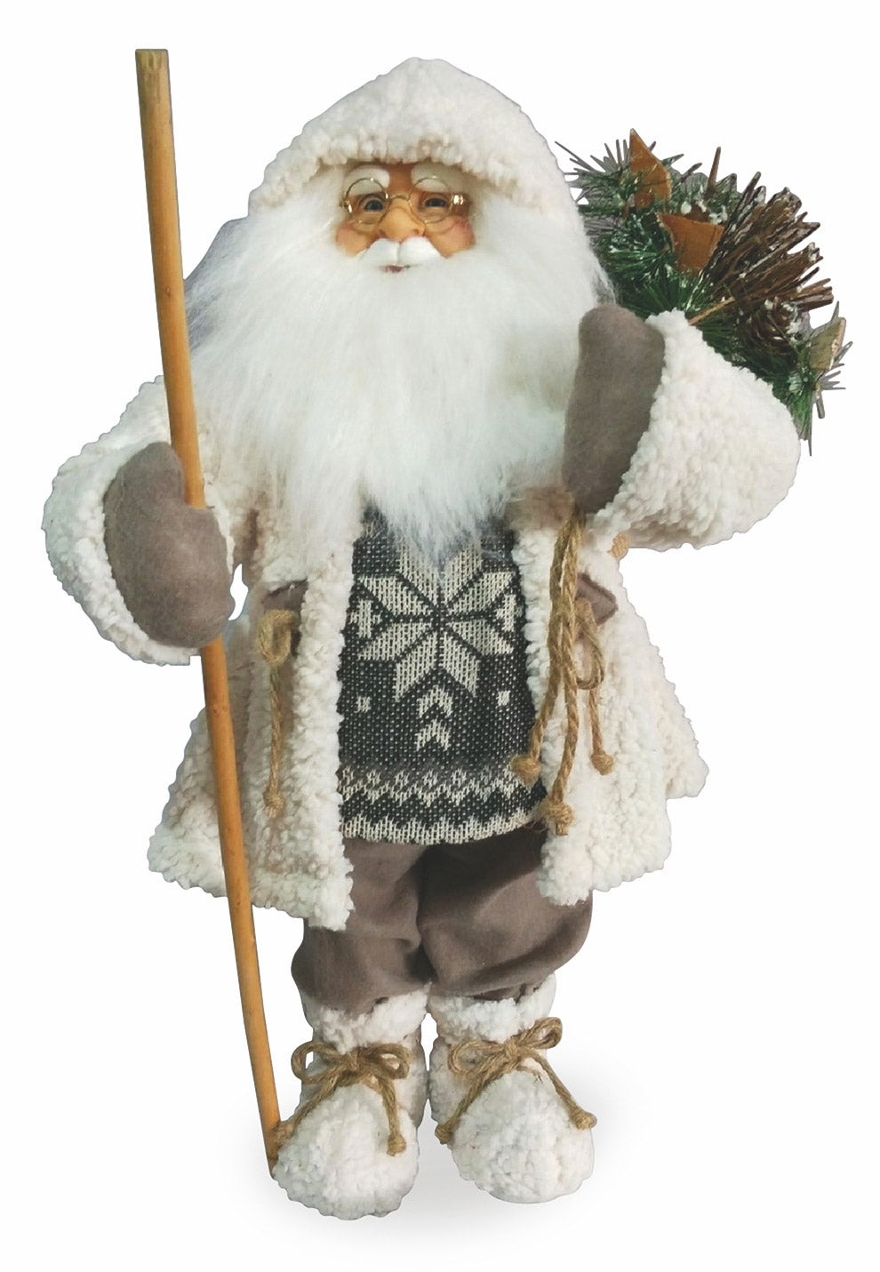 Leuchtende Weihnachtsmannpuppe mit Tannennadeln 9 LED aus Stoff H62 cm Weiß Soriani