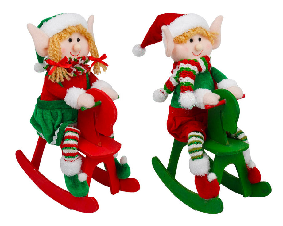 Pupazzo Elfo Natalizio H35 cm su Dondolo in Tessuto Verde o Rosso