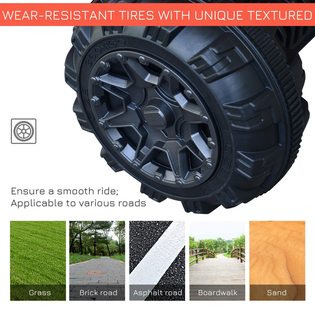 - 2 EINSTELLBARE GESCHWINDIGKEITEN: Das Quad hat 2 einstellbare Geschwindigkeiten von 3 km/h bis 5 km/h. Die Räder sind mit Stoßdämpfern ausgestattet, um den Fahrkomfort zu erhöhen