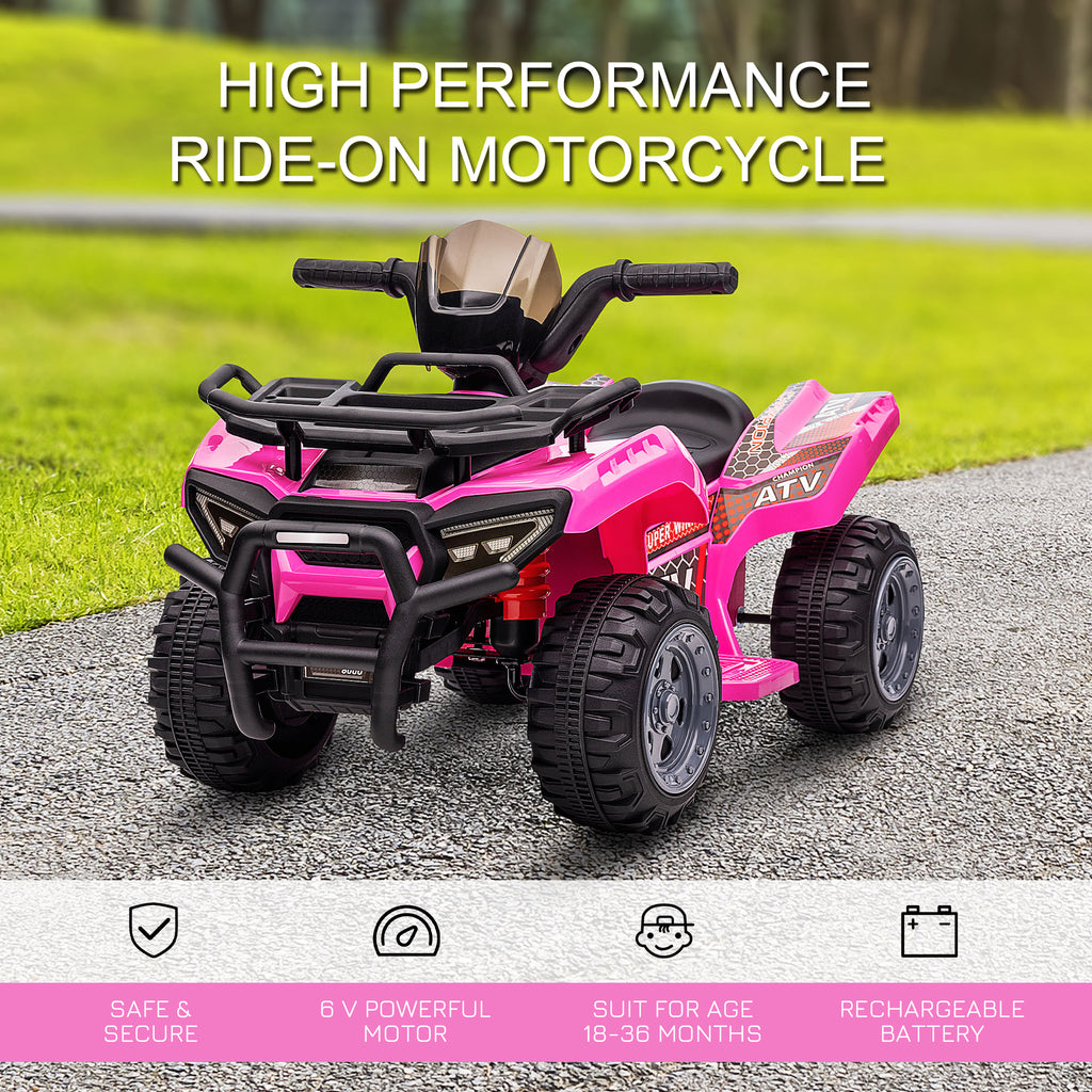 Quad Elettrico per Bambini 18-36 Mesi con Batteria Ricaricabile 6V 70x42x45 cm in Metallo e PP Rosa