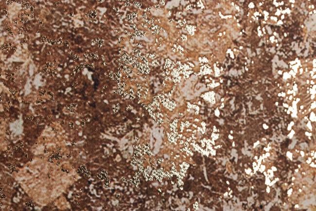 - Druck auf Leinwand mit Ölapplikationen und goldenen Blättern