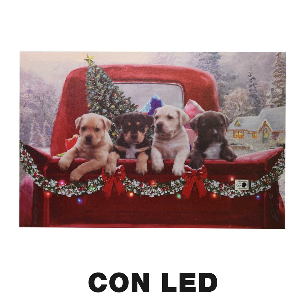 Quadro con led legno cani multicolor rettangolare cm 60x40xh1,8