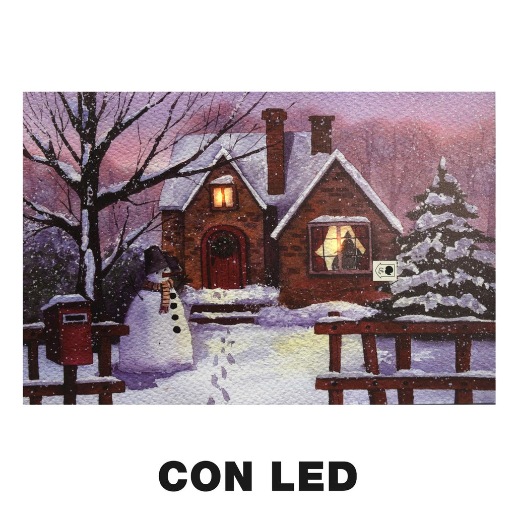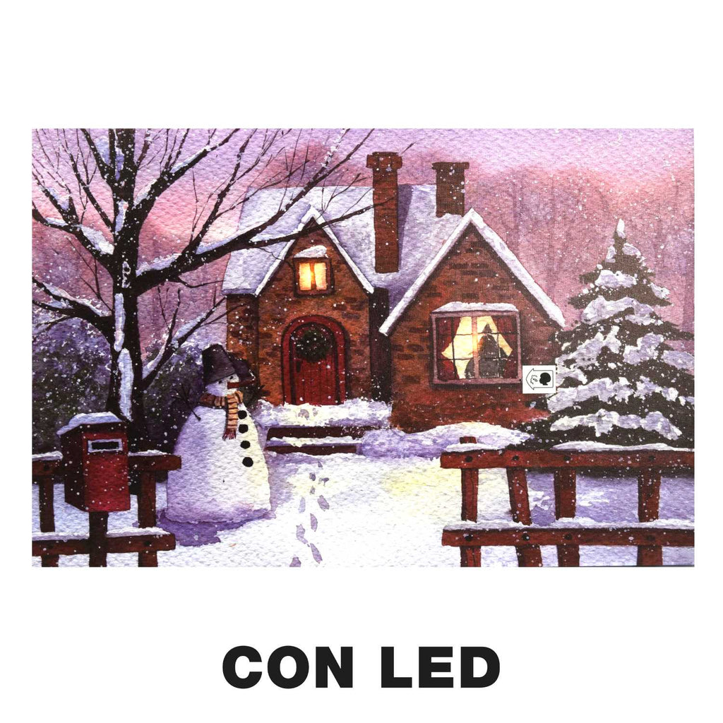 Quadro con led legno casa innevata multicolor rettangolare cm 60x40xh1,8