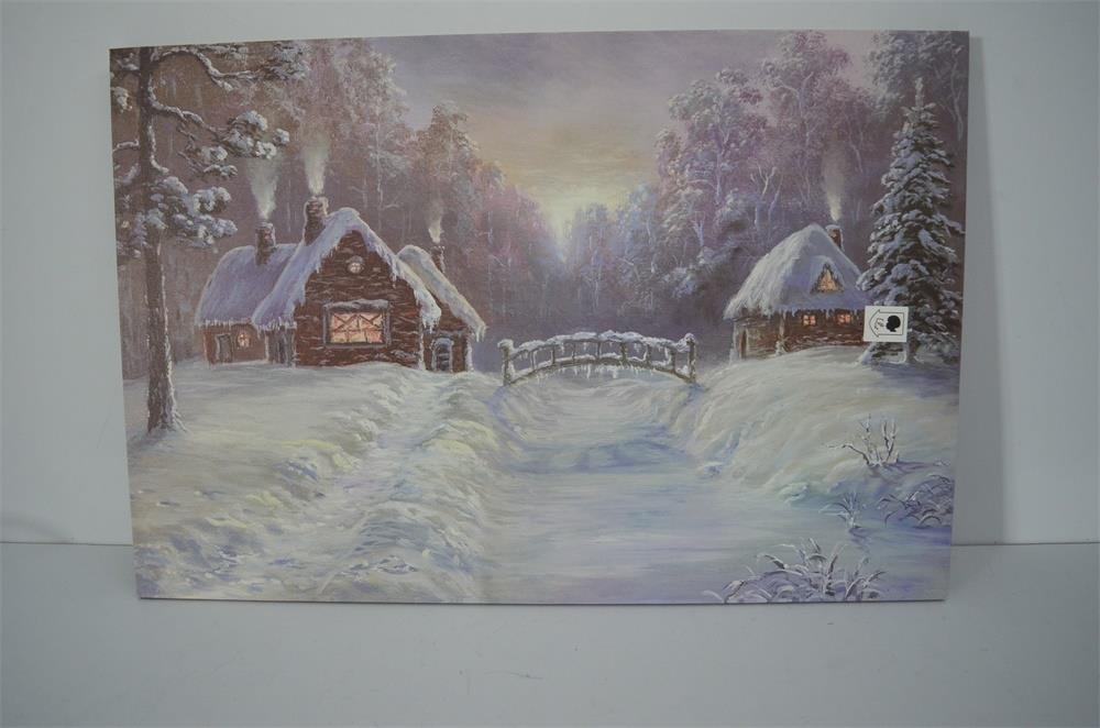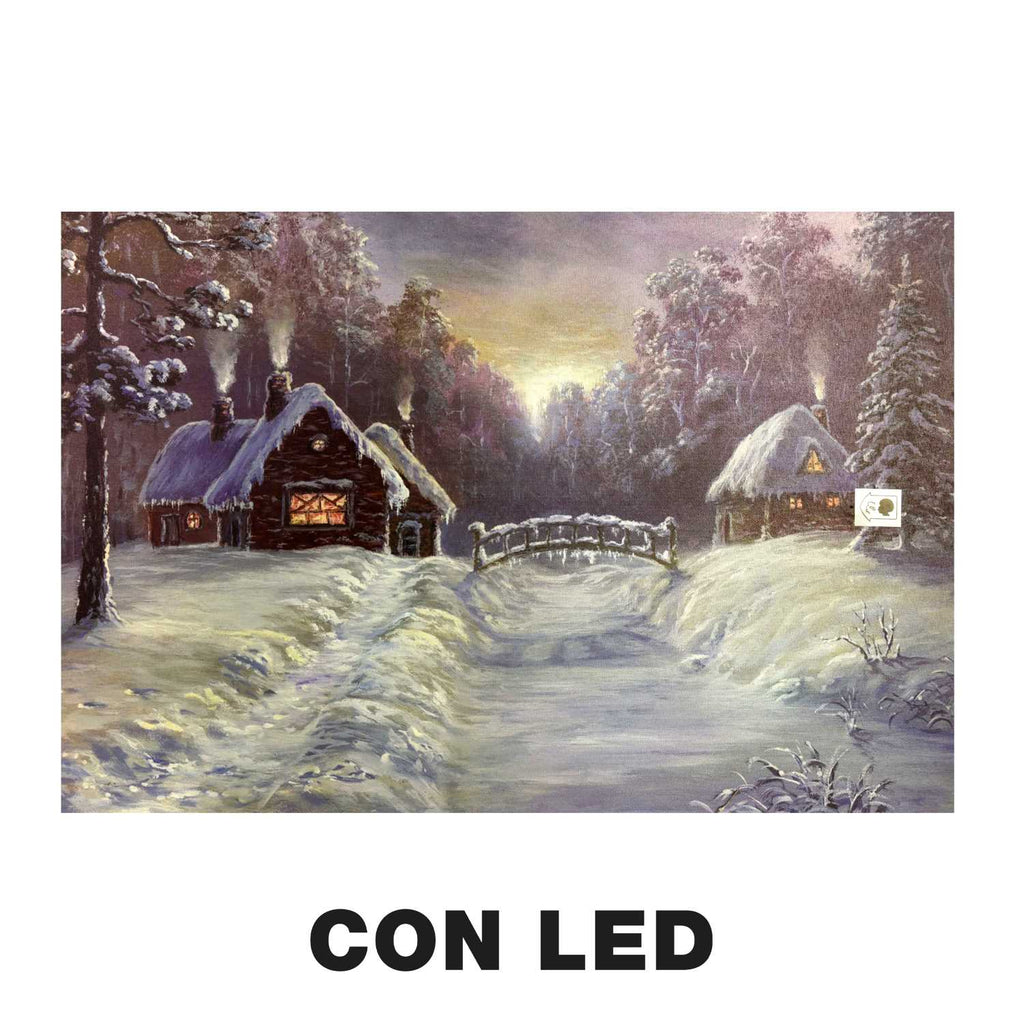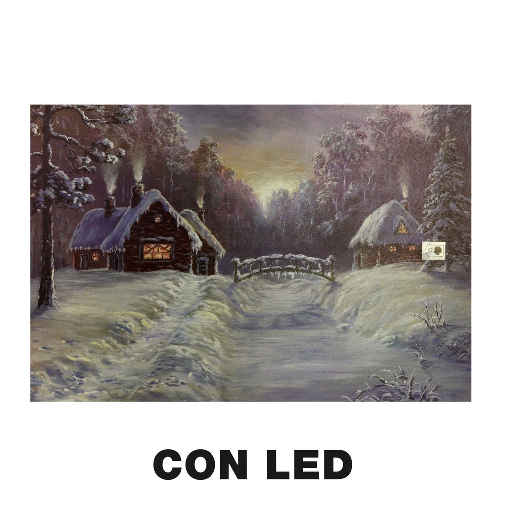 Quadro con led legno case innevate multicolor rettangolare cm 60x40xh1,8