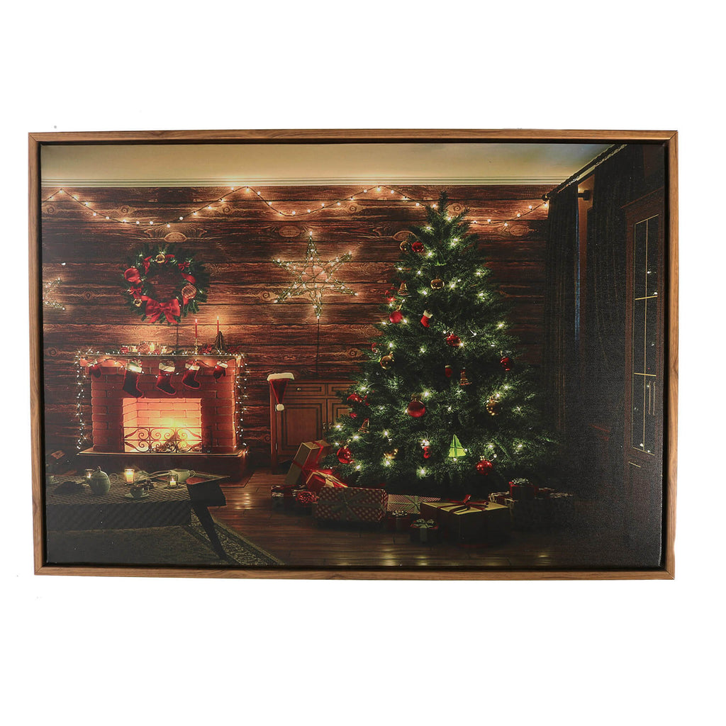 Holzbild mit rechteckigem Weihnachtsbaum Led cm 63x43x3,3