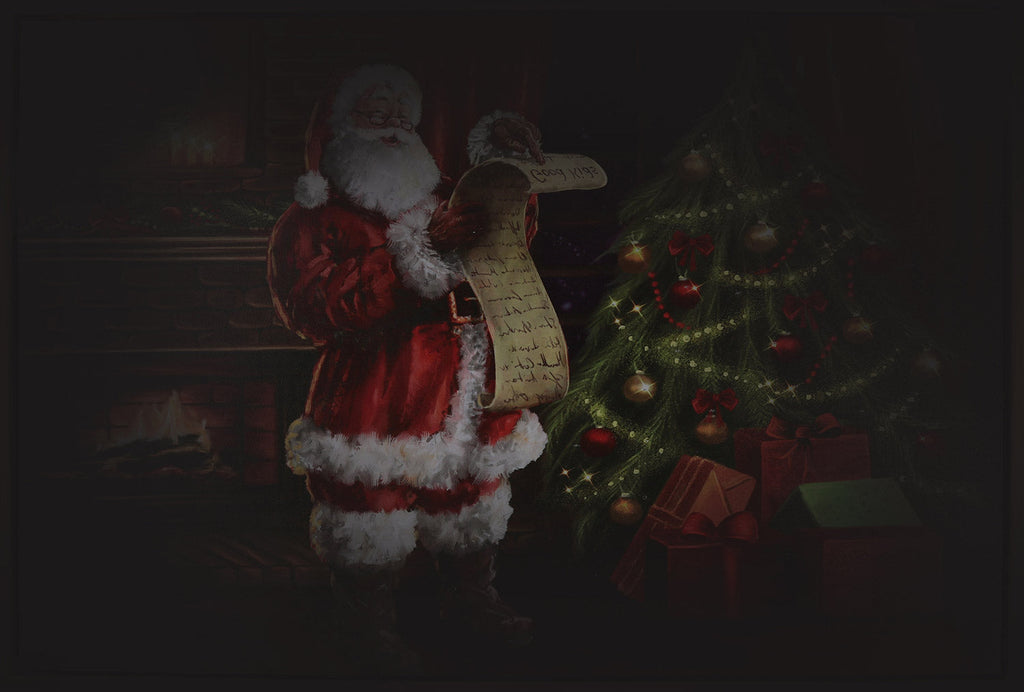 - Rechteckiges Holzbild mit Weihnachtsmann LED cm 63x43x3,3