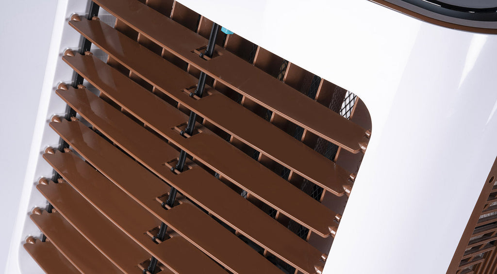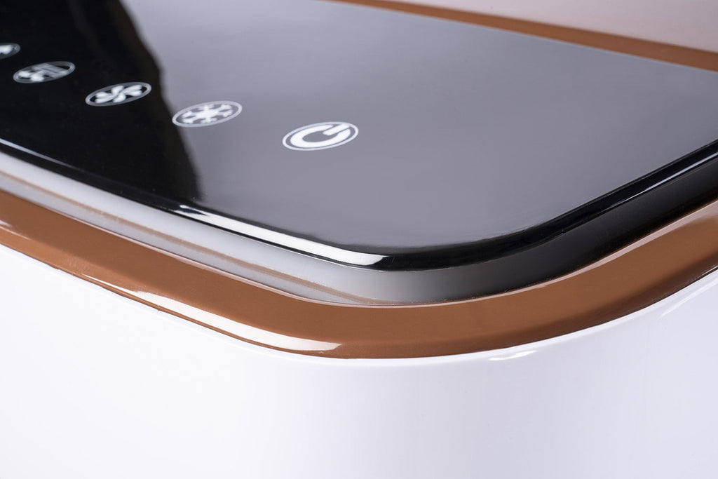Leggero e silenzioso garantisce un ingombro minimo e raffresca ambienti fino a 100 m2 con un ridotto consumo energetico. Con ampio display touch screen retroilluminato, è dotato di capiente serbatoio, per una lunga autonomia. Brandeggio automatico, fornisce un flusso d’aria regolabile a 3 velocità ed è dotato di telecomando per il controllo a distanza. Predisposizione per l’allacciamento diretto alla rete idrica, presenta una scocca elegante e resistente.